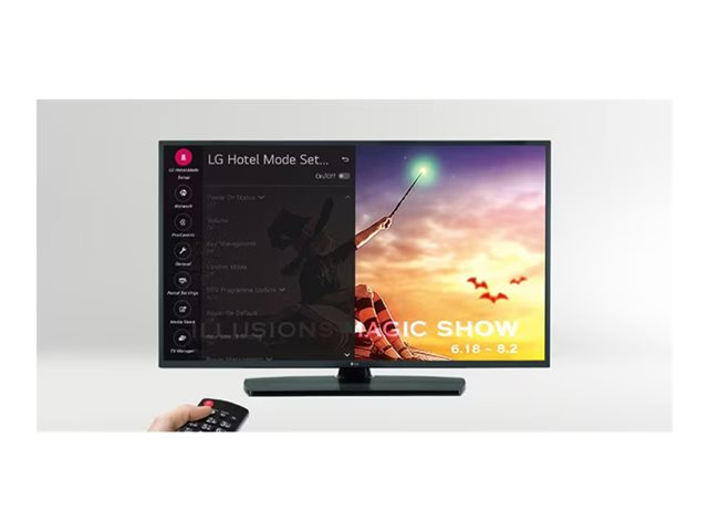 Kommersiella funktionerHälsovårdsläge, Pro:Centric Smart, Lock Mode, Pro:Centric V, Pro:Centric Server, SNMP-support, Pro:Idiom DRM, vakna på RF, Real-Time Clock (RTC), stöd för NTP, USB Auto Playback+, Remote Diagnostics, video välkommen, Pro:Centric Direct, EzManager, Infoga bild, V-Lan Tag, Real Time Communication (webRTC), Hospitality Technology Next Generation (HTNG) 1.4, Pro:Centric Cloud, stämningsdisplay, USB-kloning, Pro:Idiom Media DRM, snabbmeny