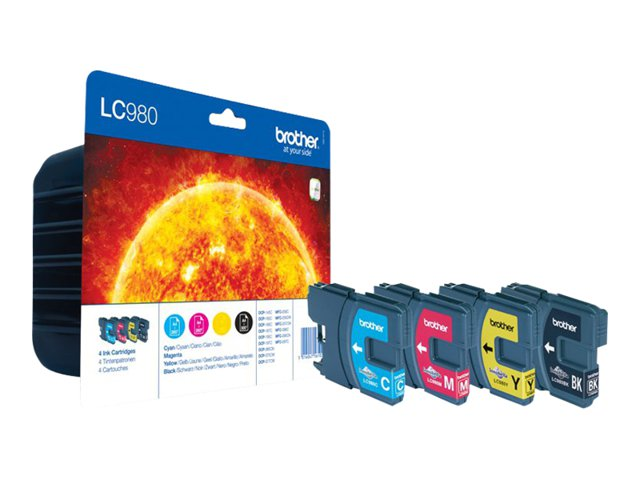 Brother LC980VALBPDR - 4-pack - svart, gul, cyan, magenta - original - blister - bläckpatron - för Brother DCP-145, 163, 165, 195, 365, 373, 375, 377, MFC-250, 255, 290, 295, 297