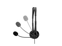 - Påbörja valfritt samtal utan problem. Den flexibla bom-mikrofonen blockerar bakgrundsljud för att hålla samtalet fokuserat på rösterna. Den inbyggda volymkontrollen och -dämpningen låter er kontrollera miljön.