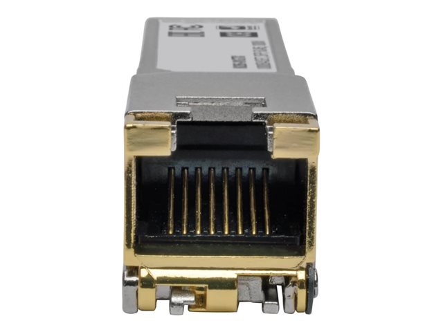 Eaton Tripp Lite Series introducerar Cisco GLC-T Compatible 1000Base-TX Copper RJ45 SFP Mini Transceiver, en Gigabit Ethernet-lösning som är utformad för överlägsen nätverksprestanda. Denna transceivermodul är konstruerad för att stödja både Cat5e- och Cat6-kablar, vilket ger mångsidiga anslutningsmöjligheter. Med sin RJ-45-kontakt erbjuder den en tillförlitlig kabelanslutning för Ethernet 1000Base-T-nätverk. Enheten utmärker sig för sin miljömässiga hållbarhet och fungerar effektivt i ett brett spektrum av temperaturer och luftfuktighetsnivåer, vilket säkerställer konsekvent prestanda under olika förhållanden. Dessutom har den automatisk upplänkning och hot swap-modulbyte, vilket förenklar installations- och underhållsprocesser. Den här transceivermodulen uppfyller MSA- och RoHS-standarderna och uppfyller inte bara branschspecifikationerna för kompatibilitet utan följer också miljösäkerhetsbestämmelserna. Oavsett om du uppgraderar ett befintligt nätverk eller sätter upp ett nytt, erbjuder den här transceivermodulen en blandning av prestanda, tillförlitlighet och användarvänlighet.