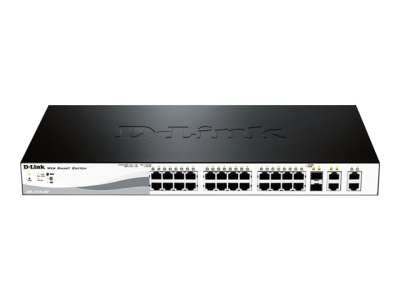 D-Link DES-1210-serien är smarta switchar för webben. Serien är utrustad med 10/100 Mbps-portar, två 10/100/1000BASE-T-portar och två kombo 10/100/1000BASE-T/SFP portar och integrerar avancerade hanterings- och säkerhetsfunktioner för att ge prestanda och skalbarhet. DES-1210-serien är enkel att använda och ger en komplett och prisvärd lösning för små och medelstora företag. Serien stöder också ACL-filtrering och D-Link Safeguard Engine. DES-1210-serien använder dessutom automatiskt röst-VLAN, vilket ger högre prioritet för rösttrafik.